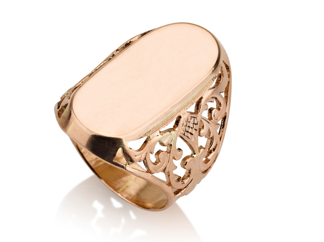 טבעת חותם אובלית מלכותית ומיוחדת. לכל מי שמחפש או מחפשת טבעת גדולה וחד פעמית היא הפתרון המושלם. טבעת תחרה צדדיה מקושטים ומעוטרים בעלים ופיתולים אשר מעניקים לה מראה מרהיב ואופיניים כל כך לטבעות ארט דקו, יכולה לשמש גם כ: טבעת חותם לאישה או טבעת חותמת לגבר. טבעת בסגנון וינטאג׳ או טבעת בסגנון עתיק תעניק רושם ונוכחות לכל מי שתזכה או יזכה לענוד אותה. לטבעות חותם הסטוריה מפוארת וארוכת שנים מימי קדם ועד לעת המודרנית. הן לרוב מתאימות לשני המינים, אופנתיות מאוד ובעלות אופי מיוחד משלהן. בעבר היה נהוג לחתום על הסכמים חשובים בעזרתן אצילים, שועי עולם ומנהיגים רבים נהגו לענוד טבעת חותם זהב מסוגננת ומעוצבות במיוחד בשבילם שלאף אחד היה אסור להעתיק. לטבעות חותם משמעות רבה בהסטוריה האנושית. לא פלא שגם כיום הן עדיין פופולאריות מאוד. ניתן לחרוט עליהן כל העולה על רוחכם אם מסמלים אישיים בעלי משמעות אישית או משפחתית או פשוט ראשי תיבות של אהוביכם או של בעל/ת טבעת. ניתן גם כמובן להשאיר אותן חלקות כמו שהן למראה נקי. בתכשיטי עידית אנחנו מאוד אוהבים את ז׳אנר הטבעות האלה ויש לנו מבחר גדול של טבעות חותם. טבעת חותם אובלית זו היא ללא ספק אחת הוריאציות המיוחדות לז׳אנר המרשים הזה. רוצים להעניק לאהוביכם את המתנה המושלמת? או פשוט תכשיט מתנה ייחודית לעצמכם? טבעת חותם אובלית זו תעניק להם סטייל ומראה מהפנט כמו שאין לאף טבעת אחרת.