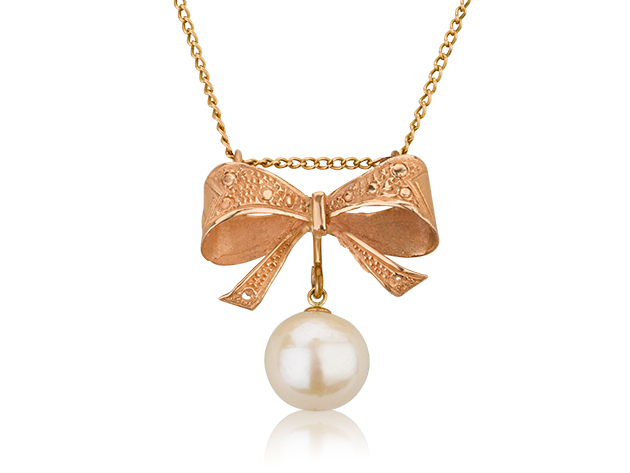 תליון סרט פפיון פנינה זהב 14 קראט