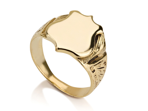 טבעת חותמת בצורת מגן תבליט סוס ופרש
